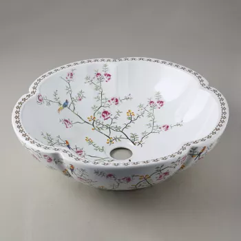 Elegant Petal Shaped Ceramic Vessel Sink with Antique Brass Faucet