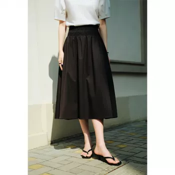 Autumn Mid-Length Casual Skirt for Women – Back Slit, Elastic Waist, H Shape