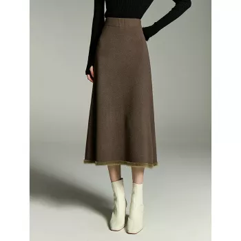 Women’s Winter and Autumn Knit Elastic Waist A-Line Long Skirt
