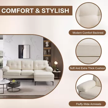 83″ Modern L-Shaped Deep Seat Sofa with Reversible Chaise Lounge