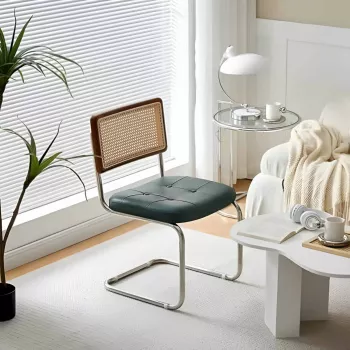 Mid-Century Modern Armless Dining Chairs with Rattan Backrest and PU Leather
