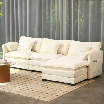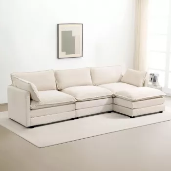 Oversized Modular Sectional Sofa with Movable Ottoman, 4-Seater L-Shaped Corduroy