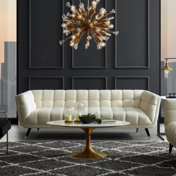 Adept Mid-Century Modern Ivory Velvet Tufted Sofa