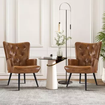 Set of 2 PU Leather Wingback Living Room Armchairs