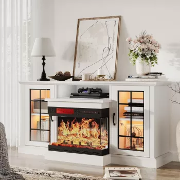 59″ Fireplace TV Stand with Glass Doors for TVs up to 65″