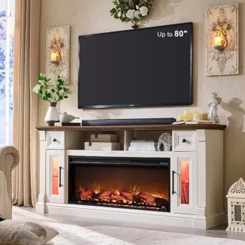 Farmhouse Fireplace TV Stand with 40″ Electric Fireplace for 80″ TV
