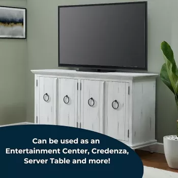 Rustic White Solid Wood 65″ TV Stand with Distressed Finish
