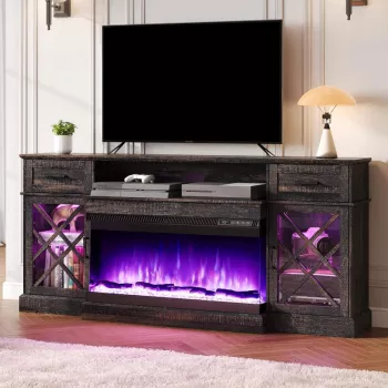 Rustic Fireplace TV Stand with 42″ Electric Fireplace for 80-Inch TVs