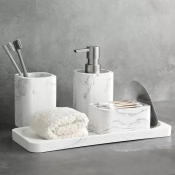 Marble White Bathroom Accessories Set with Soap Dispenser and Toothbrush Holder