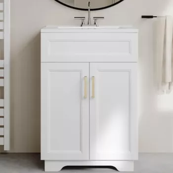Modern Grey Bathroom Vanity with 24″ Ceramic Sink and Storage Cabinet