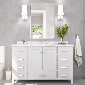 55″ White Bathroom Vanity with Italian Carrara Marble Countertop and Backsplash