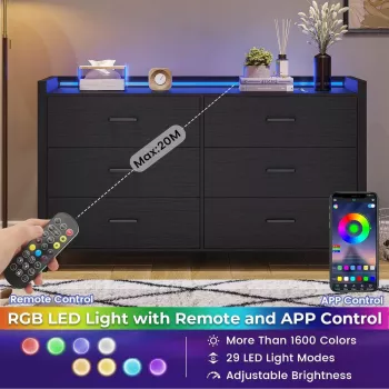 Modern LED 6-Drawer Dresser for Bedroom – Wood Chest with Adjustable Lights