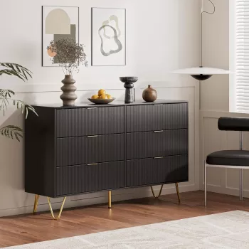 Modern 6-Drawer Dresser with Metal Legs and Gold Pulls