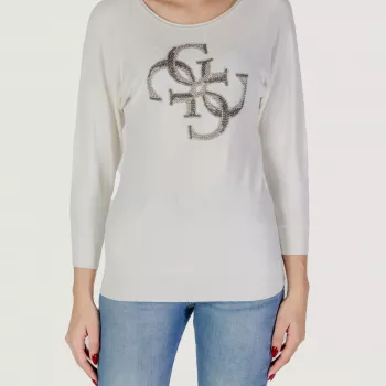 Guess Women’s White Knitwear with Long Sleeves and Round Neck