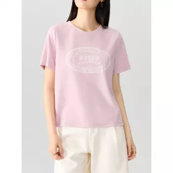 Pink Knitted T-Shirt with Printed Design