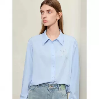 Elegant Embroidered Lapel Collar Shirt