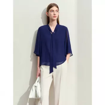 Elegant Stand Collar Trumpet Sleeve Chiffon Blouse