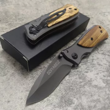 Damascus Steel Tactical Folding Knife with Wood Handle