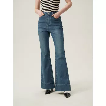 Retro Washed High-Waisted Bootcut Jeans with Slight Stretch