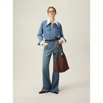 High Waist Straight Leg Jeans with Contrast Leather Label