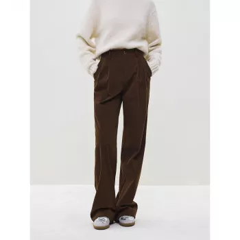 Elastic Waist Corduroy Straight Pants – High Waist Casual Trousers