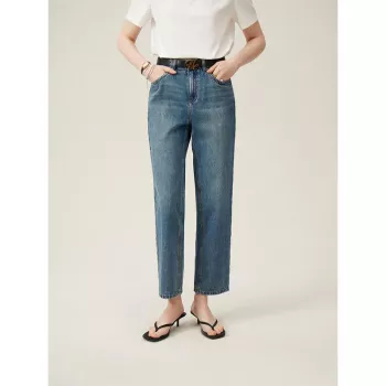 High Waist Cropped Straight Leg Denim Jeans for Women – 100% Cotton, Casual Spring