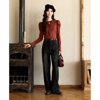 Retro High-Waist Wide Leg Jeans – Dark Grey Denim for Autumn/Winter