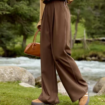 High Waist Wide-Leg Wool Pants for Women – Winter Casual Trousers