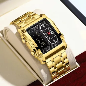 Square Gold Stainless Steel Business Wristwatch