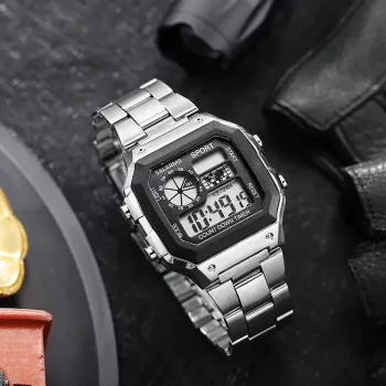 Stainless Steel Digital Sports Watch: Waterproof, Multifunctional LED Wristwatch for Men