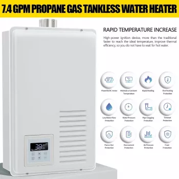 Propane Tankless Water Heater, 7.4 GPM, Indoor Use, Instant Hot Water